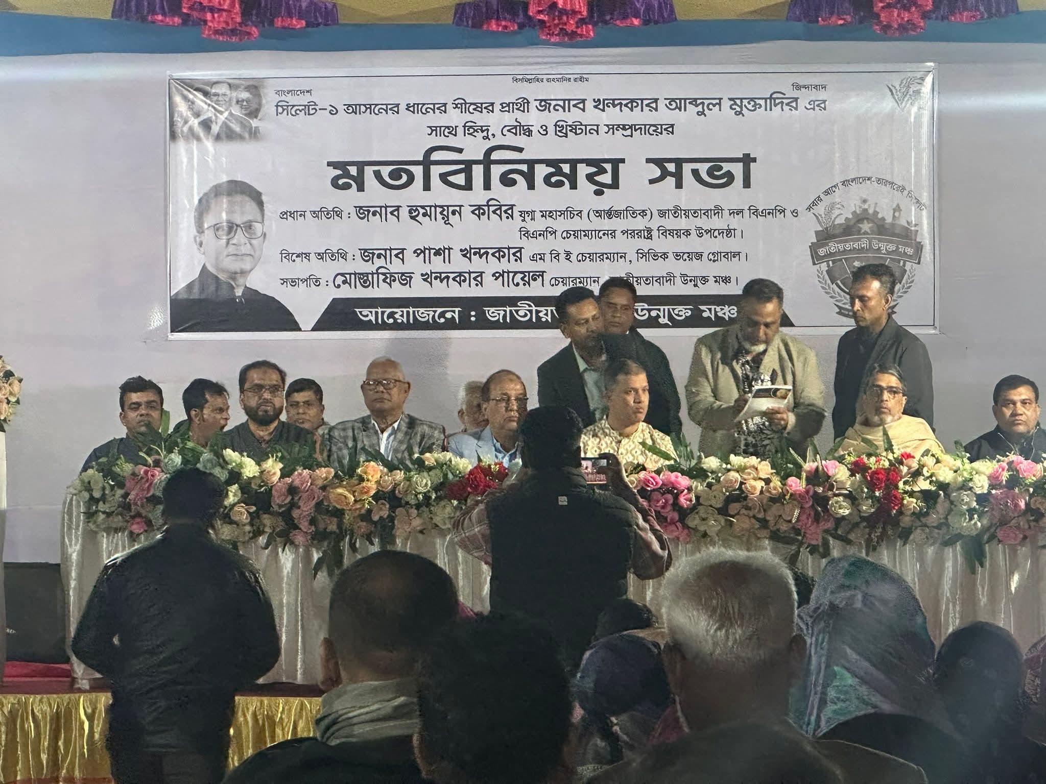 সনাতন সম্প্রদায়ের পাশে ধানের শীষ: সিলেটে খন্দকার মুক্তাদিরের মতবিনিময় সভা