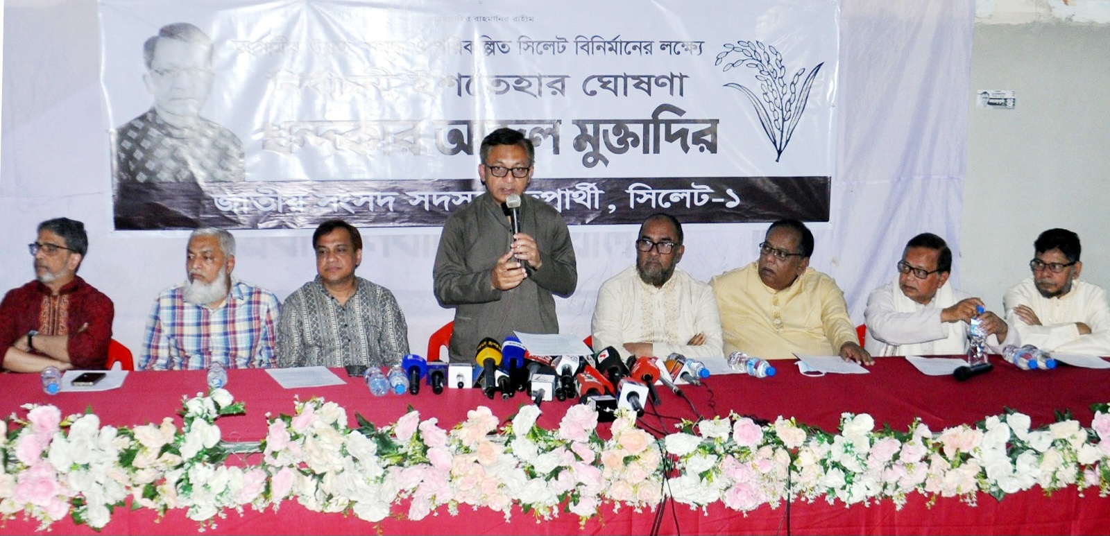 খন্দকার আব্দুল মুক্তাদির তার বক্তব্যে বলেন, সিলেট হিন্দু-বৌদ্ধ-খ্রিস্টান, মনিপুরী, খাসিয়া সহ বিভিন্ন জাতিগোষ্ঠীর পূর্বপুরুষদের আবাসভূমি। ধর্মীয় সম্প্রীতি আরও দৃঢ় করে ঐক্যবদ্ধভাবে সিলেটকে এগিয়ে নেওয়াই তার অঙ্গীকার। তিনি কৃষি ও শিল্প খাতে অভূতপূর্ব বিপ্লব ঘটিয়ে শিক্ষিত ও অর্ধশিক্ষিত বেকারদের কর্মসংস্থানের ব্যবস্থা করার আশ্বাস দেন এবং প্রান্তিক জনগোষ্ঠীর উন্নয়নে বিশেষ পরিকল্পনার কথা তুলে ধরেন।